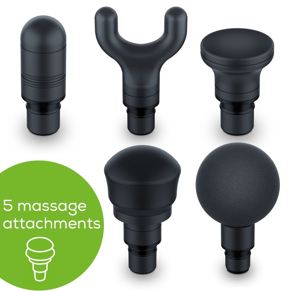 Масажор Beurer MG 185 deep tissue massager, 9 intensity levels & 3 massage programmes, 5 massage attachments, Lithium-ion battery up to 5.5h of use, storage case