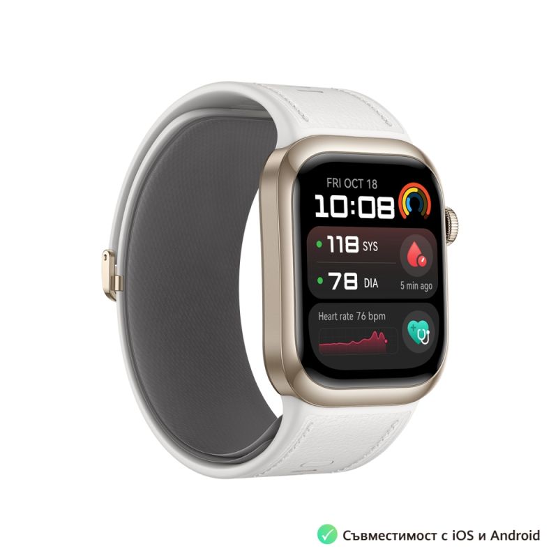 Допълнителни функции:Microphone, Speaker, Micro pump, Rotating crown and Function button; Blood Pressure Measurement & ECG with built-in pump & inflatable strap; ECG certified