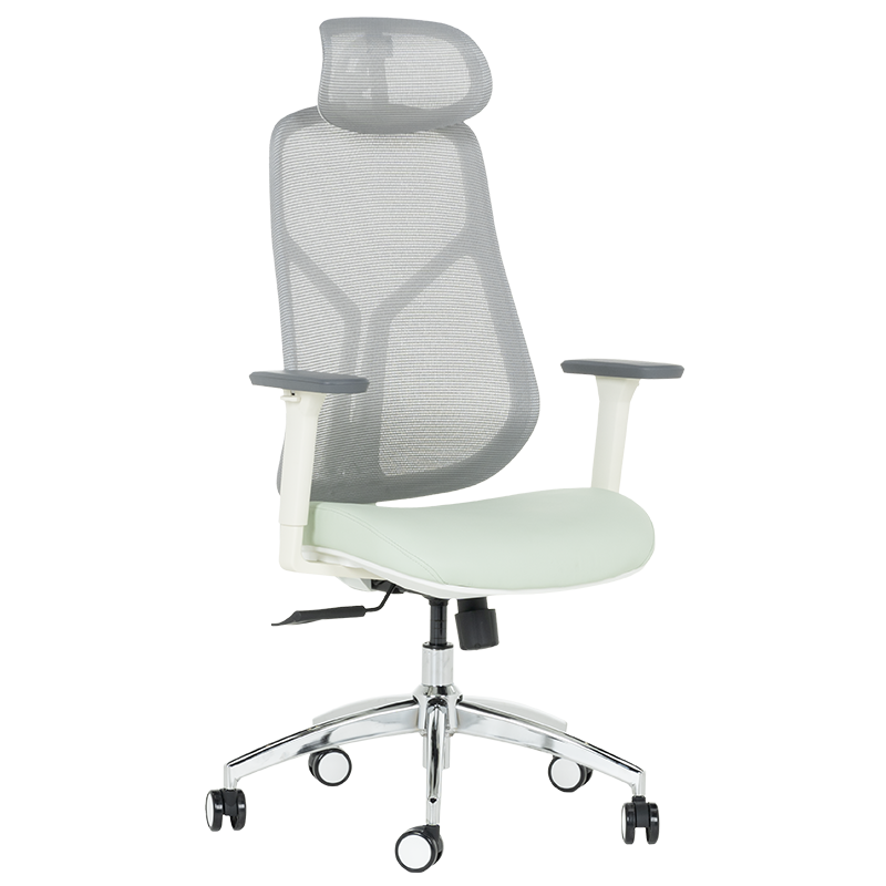 Ергономичен стол Carmen 7901 W еко кожа - сив-светлозелен