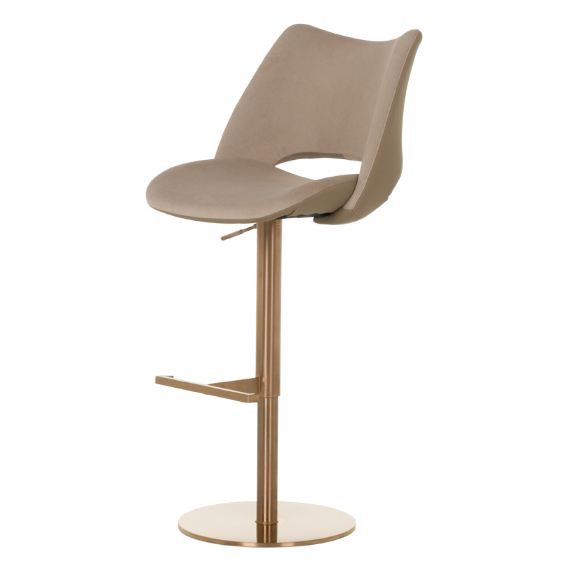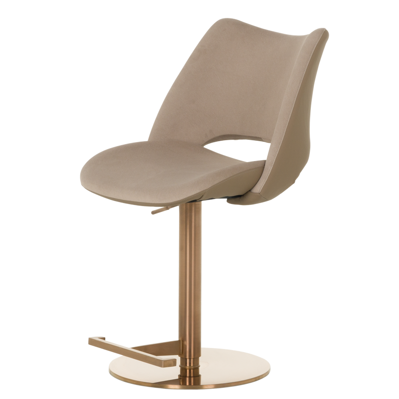 Бар стол MARIRA съчетава стил и комфорт с модерна функционалност. Тапициран в луксозна еко кожа в изтънчен капучино цвят, този стол ще се впише перфектно във всеки съвременен интериор. Основата от полирана неръждаема стомана осигурява стабилност и издръжливост, докато функцията за въртене на 360 градуса добавя допълнително удобство. Столът разполага с газов амортисьор, позволяващ лесно регулиране на височината за персонализиран комфорт, и издържа натоварване до 120 килограма. Подходящ за барове, кухни или дневни пространства, този бар стол е перфектната комбинация от стил и практичност. Пълна информация за размерите и характеристиките на модела ще намерите в таблицата в таб/поле "Техническа информация".