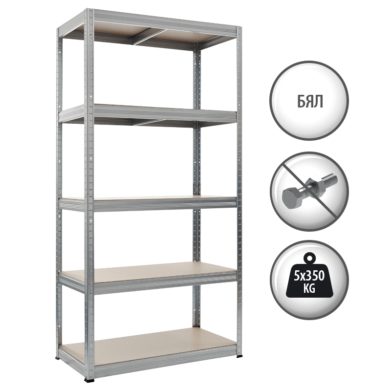STAR е стабилен стелаж с размери 180х90х35 см, изработен от прахово боядисан метал. Той има 5 МДФ рафта, всеки от които издържа на максимално натоварване до 350 кг., благодарение на допълнителния укрепващ елемент от долната страна на плота. Стелажът се сглобява бързо и лесно чрез безболтов монтаж, а височината на рафтовете може да бъде регулиране според вашите нужди. Пълна информация за размерите и характеристиките на модела ще намерите в таблицата в таб/поле "Техническа информация".