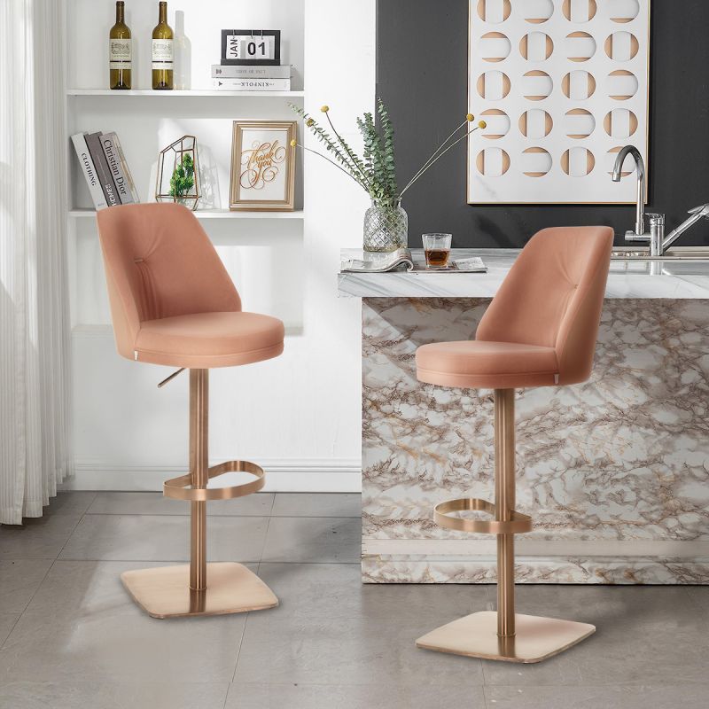 Бар столът HAUNA - розов RG впечатлява с мек розов нюанс и елегантна медено-златиста база, добавящи изисканост във всяко пространство. Седалката е изработена от висококачествени материали, осигуряващи комфорт и издръжливост. Столът разполага с 360-градусово въртене и регулируема височина, които го правят изключително практичен. Със здрава конструкция, която издържа до 120 кг, HAUNA е идеалното съчетание на стил и функционалност. Пълна информация за размерите и характеристиките на модела ще намерите в таблицата в таб/поле „Техническа информация“.