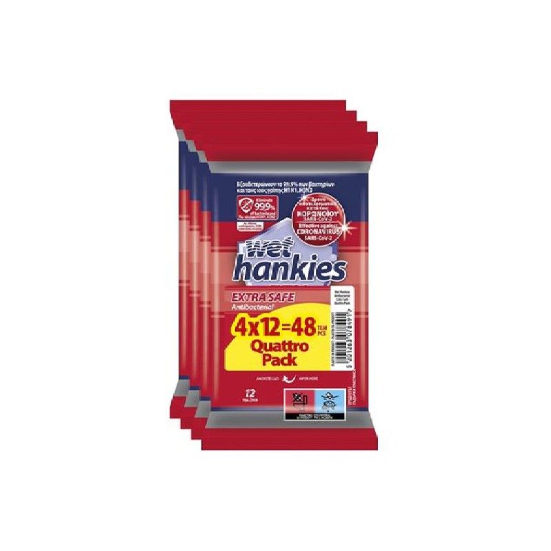 Мокри кърпи Wet Hankies Почистващи и ароматизиращи, 4x12 бр. в плик