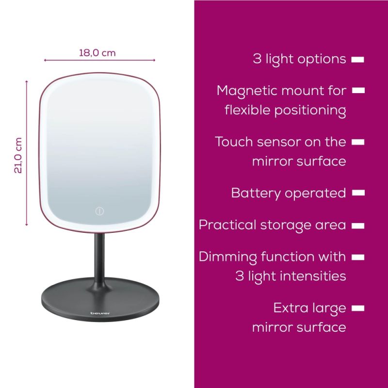 Други:Automatic switch off after 15 minutes; Magnetic bracket for flexibility when positioning and removing the mirror; Easy to use thanks to touch-sensor on the mirror surface