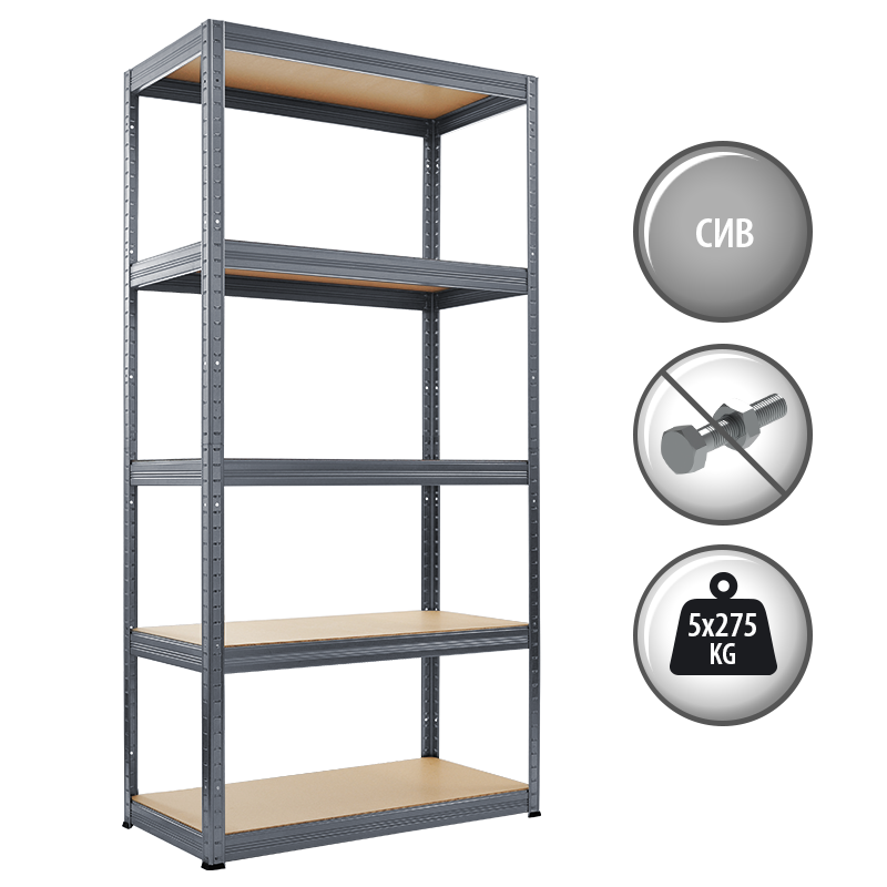 Метален стелаж STAR 180х75х35 см, до 275 кг на рафт - сив