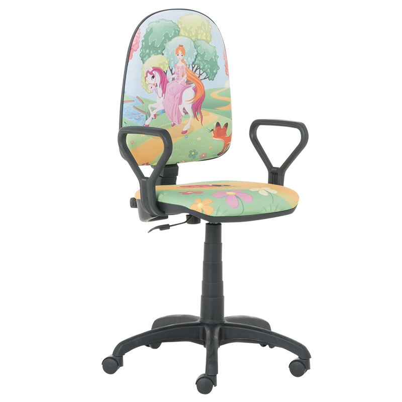 Детски стол Prestige с подлакътници - принцеси е функционален модел, който ще се впише чудесно в стаята на всяко момиче. Качествената дамаска с любимите анимационни герои е ключов акцент. Столът за деца разполага с функция заключване на облегалката в различни позиции и коригиране височината на облегалката. Пълна информация за размерите и характеристиките на модела ще намерите в таблицата в таб/поле "Техническа информация".
