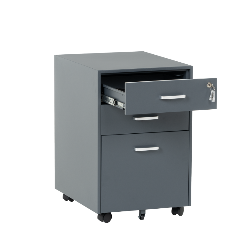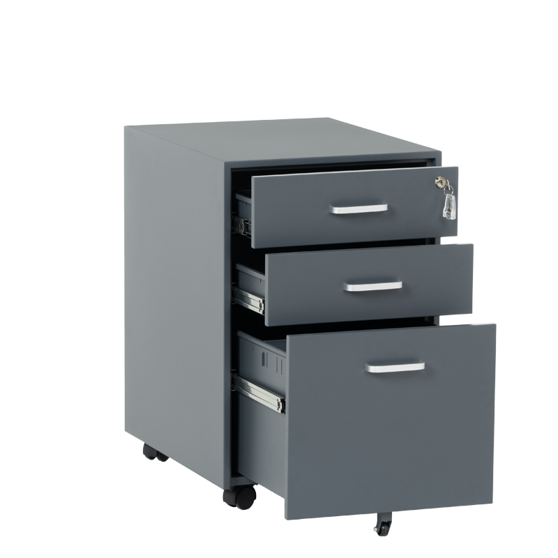 Офис контейнерът Carmen CR-1802 J SAND е метален шкаф тип кардекс с 3 чекмеджета с удобни дръжки и централно заключване. В основата на шкафа има колела за лесно придвижване при нужда. Контейнерът пристига сглобен, без необходимост от монтаж. Моделът е със система против накланяне, поради която чекмеджетата се отварят едно по едно (за да отворите едно, другите 2 трябва да са затворени).Пълна информация за размерите и характеристиките на модела ще намерите в таблицата в таб/поле "Техническа информация".