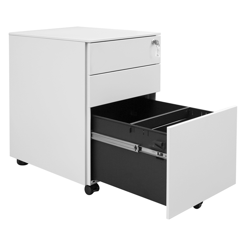 Офис контейнер Carmen CR-1814 ZH разполага с 3 чекмеджета, включително долно чекмедже с водачи за висящи папки, и е снабден с централно заключване с ключ за сигурност. Благодарение на компактния си размер и колелца, е изключително удобен за позициониране под или до бюро. Горните чекмеджета са подходящи за офис принадлежности, а долното – за документи и папки. Моделът се предлага сглобен, с което отпада нуждата от монтаж. Пълна информация за размерите и характеристиките на модела ще намерите в таблицата в таб/поле "Техническа информация".