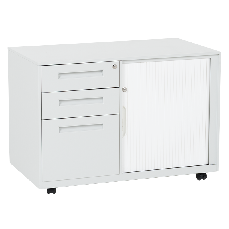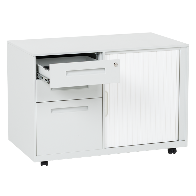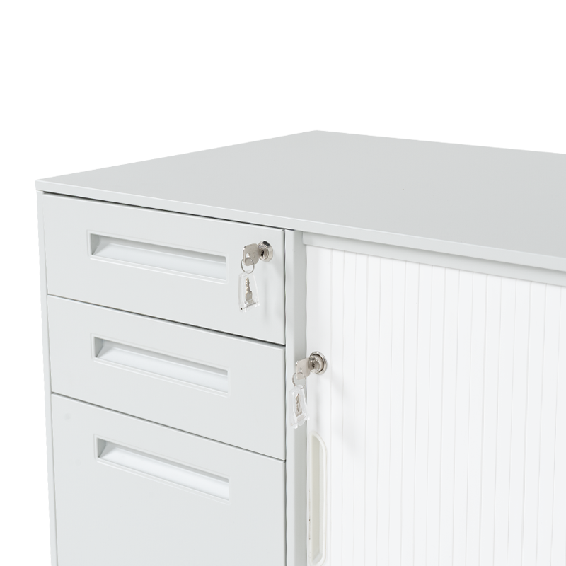 Кардекс Carmen CR-1850 K предлага практично решение за организиране на документи и офис принадлежности. Разполага с две чекмеджета и шкаф с плъзгаща врата, като всяко отделение е снабдено с индивидуално заключване с ключ за повишена сигурност. Вътрешното пространство включва регулируеми рафтове, които осигуряват гъвкавост при подредба. Компактната конструкция и плъзгащият механизъм на вратата го правят удобен за използване дори в ограничени пространства, например под бюро. Пълна информация за размерите и характеристиките на модела ще намерите в таблицата в таб/поле "Техническа информация".