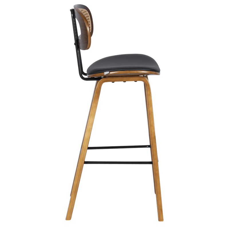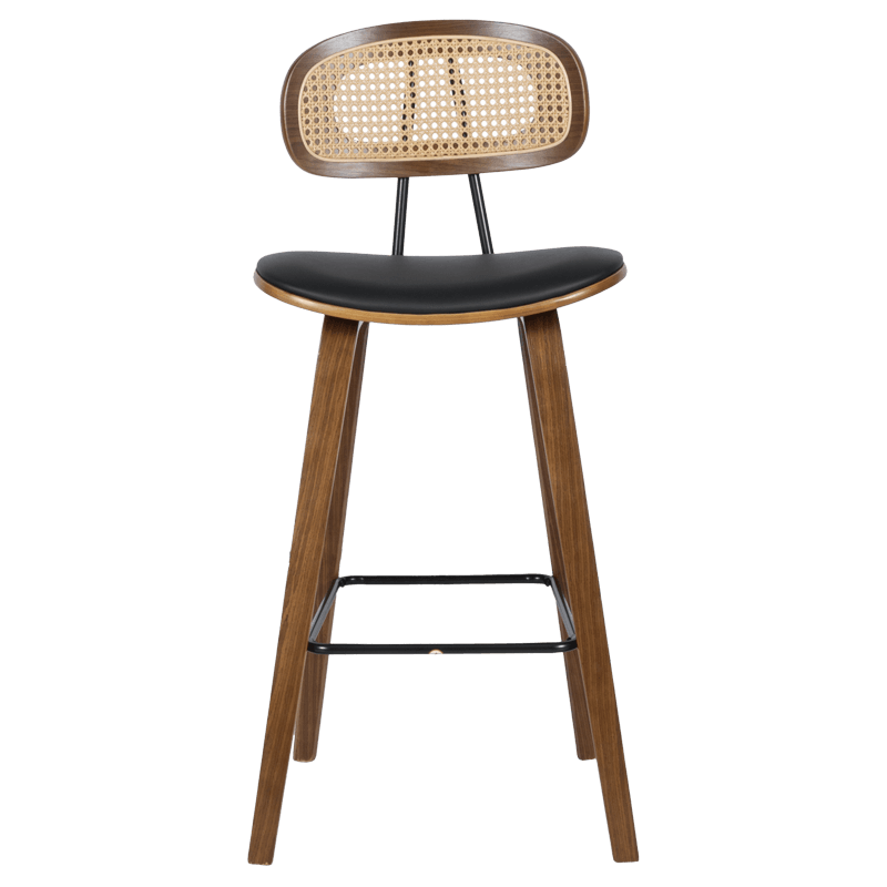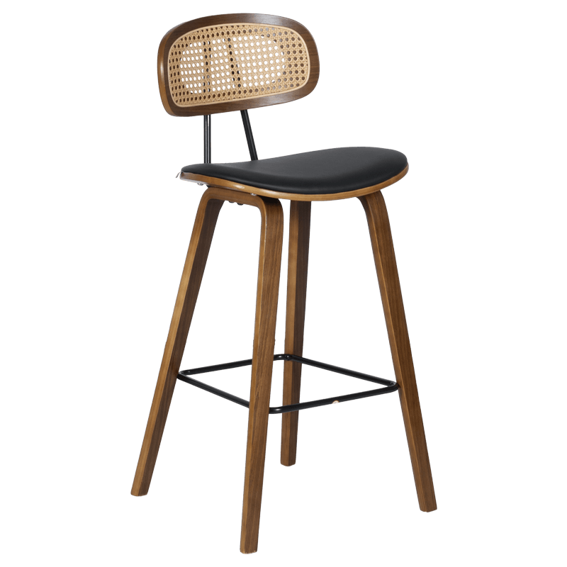 Бар стол Carmen 4029 съчетава елегантност и естествен чар в модерен ретро стил. Седалката е изработена от еко кожа и дърво, осигуряваща комфорт и издръжливост при ежедневно ползване. Краката са дървени, стабилни и стилно извити, а степенката от праховобоядисан метал допринася за удобството при седене. Облегалката е изработена от дърво и изкуствен ратан, придавайки лек и изискан акцент на дизайна. Пълна информация за размерите и характеристиките на модела ще намерите в таблицата в таб/поле 'Техническа информация'.