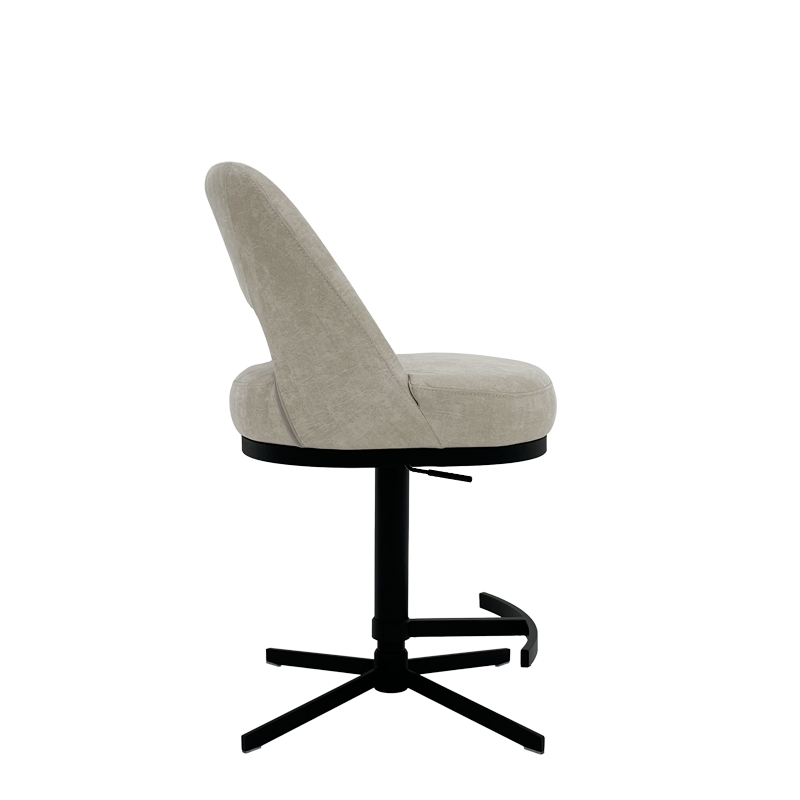 Бар стол KUNDA впечатлява с изискан силует и комфорт, създаден да превърне всяко сядане в приятно изживяване. Седалката с покет пружини и меката дамаска обгръщат тялото с деликатна подкрепа, а праховобоядисаната метална основа добавя стабилност и модерно усещане. Функциите за 360° въртене и регулиране на височината осигуряват индивидуален комфорт, допълнени от елегантна поставка за крака. Прекрасен акцент за стилни кухни, бар плотове и дизайнерски интериори. Пълна информация за размерите и характеристиките на модела ще намерите в таблицата в таб/поле 'Техническа информация'.