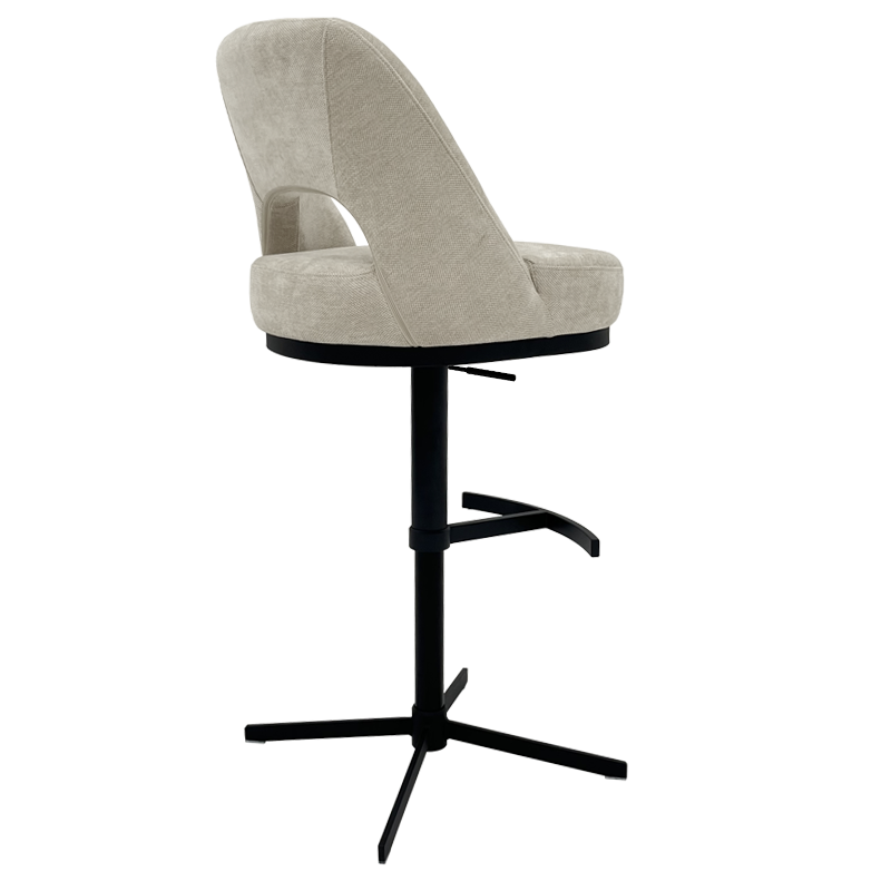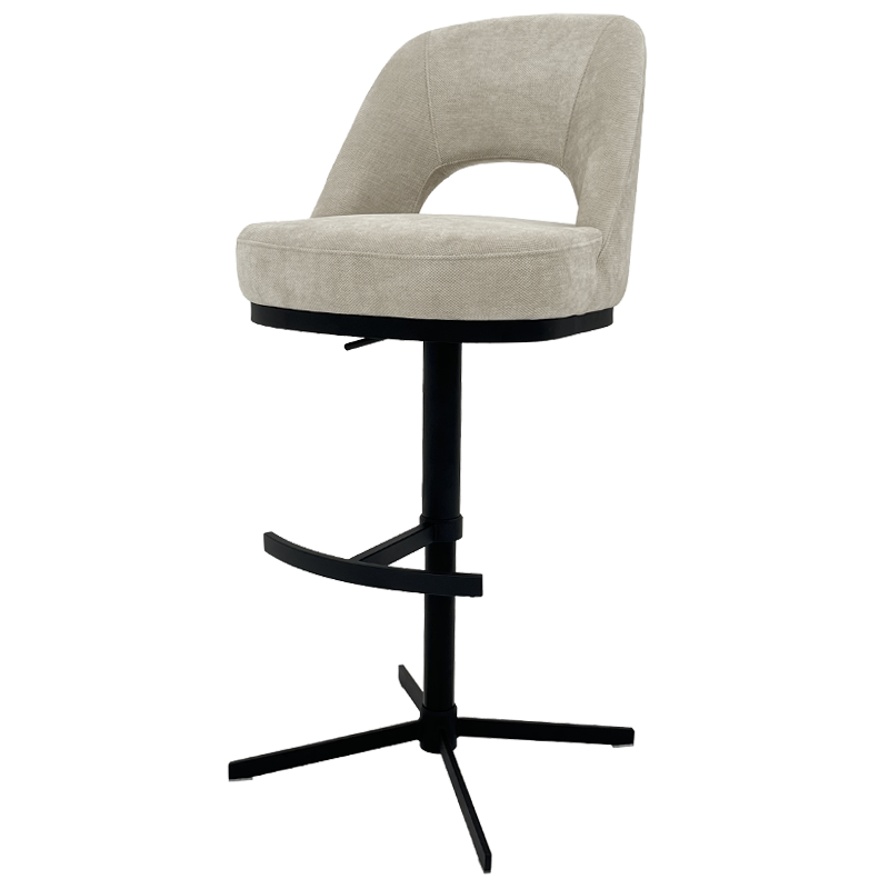 Бар стол KUNDA впечатлява с изискан силует и комфорт, създаден да превърне всяко сядане в приятно изживяване. Седалката с покет пружини и меката дамаска обгръщат тялото с деликатна подкрепа, а праховобоядисаната метална основа добавя стабилност и модерно усещане. Функциите за 360° въртене и регулиране на височината осигуряват индивидуален комфорт, допълнени от елегантна поставка за крака. Прекрасен акцент за стилни кухни, бар плотове и дизайнерски интериори. Пълна информация за размерите и характеристиките на модела ще намерите в таблицата в таб/поле 'Техническа информация'.