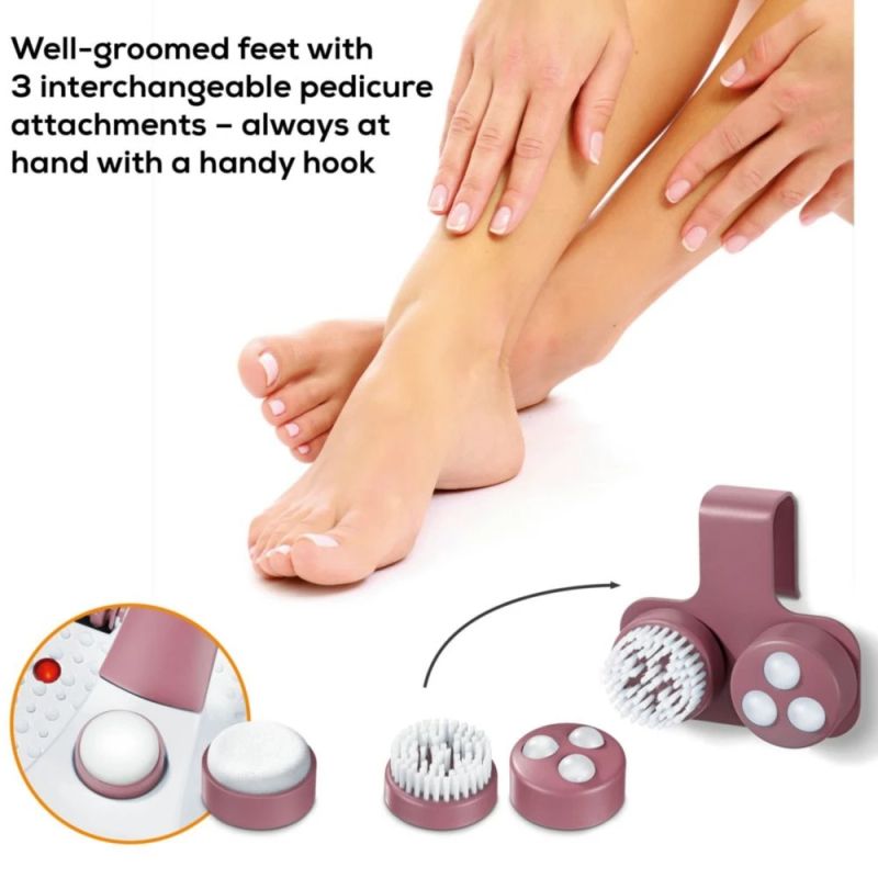 Други:3 enchangeable pedicure attachments with practical hanging; 16 integrated magnets for magnetic field application; Removable roller attachments for foot reflex zone massage; Foot rest with massage nodules; Up to size of shoe of 44