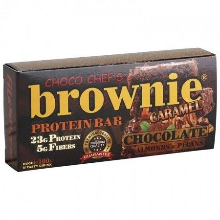 Описание: Протеинов десерт "Choco Chef's Brownie" с шоколад, бадеми, пекани и подсладител фруктоза. Протеинов десерт с 23g протеин и фибри. Изключително вкусен и допълнително обогатен с ленено семе и ленено масло. Съдържа 100% натурални плодове.