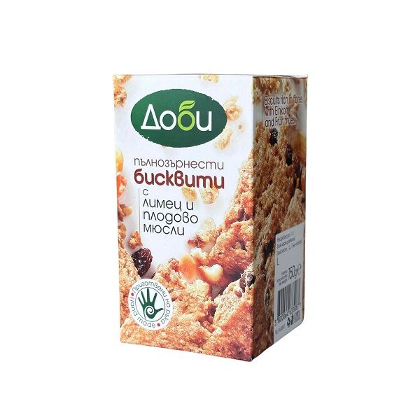 Бисквити с лимец и плодово мюсли, пълнозърнести, “Доби”, 150гр